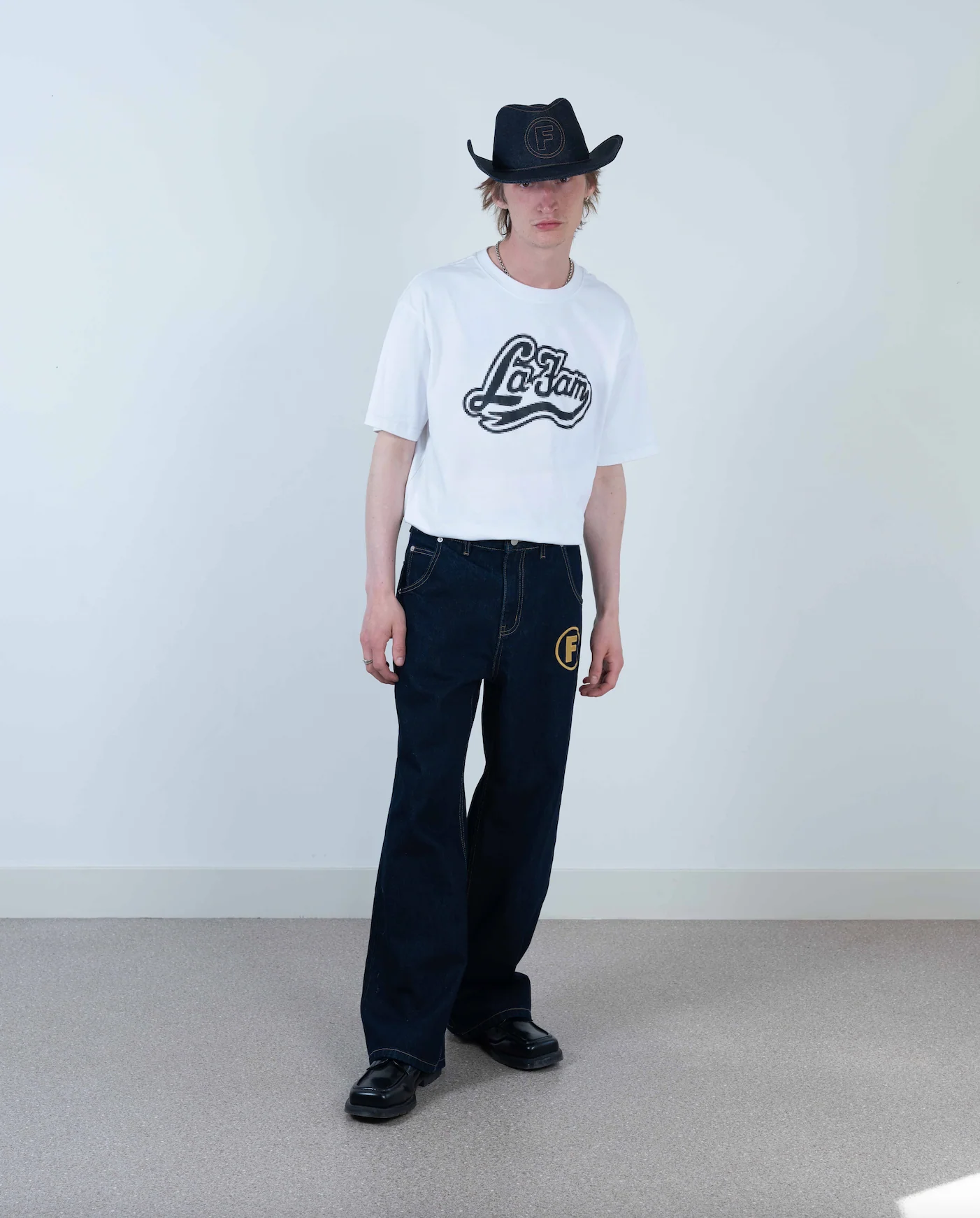 white pixel logo tee